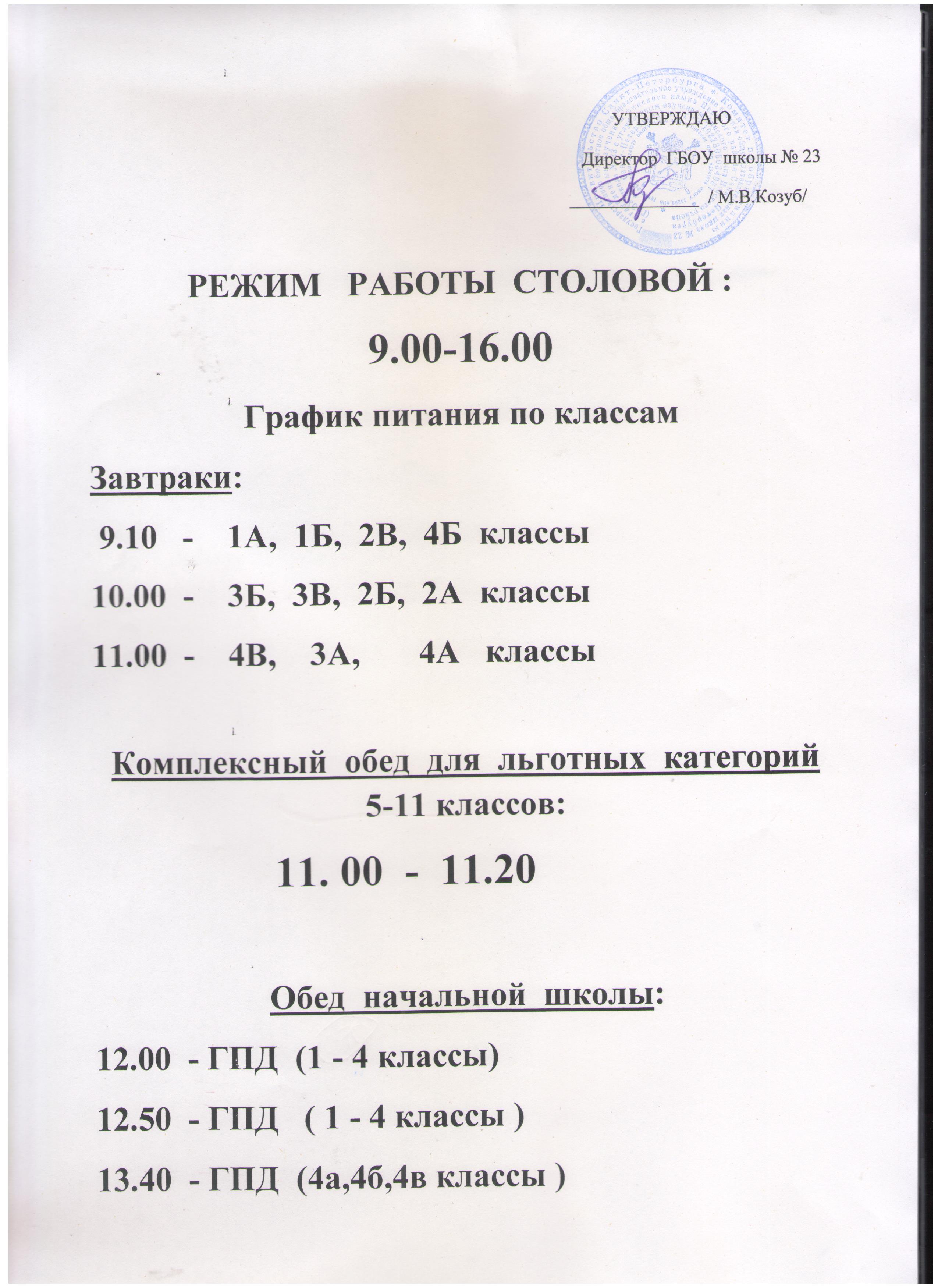 График питания в столовой